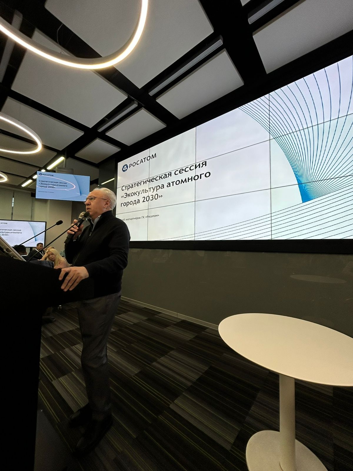 Во второй день мероприятия, экопратнеры Росатома, где мы также являемся участниками, обсуждали стратегию развития экологического направления в атомных городах к 2030 году.