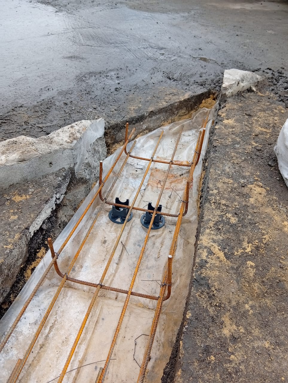 Выполняем работы по монтажу отвода ливневых вод с площадки накполения ТБО.